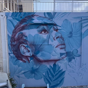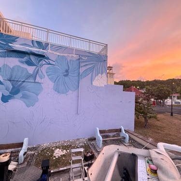 Entre ciel et fleurs, cette fresque raconte une histoire de lien : celui qui nous unit à la nature, à nos racines et à ce qu’il y’a de plus doux en nous.